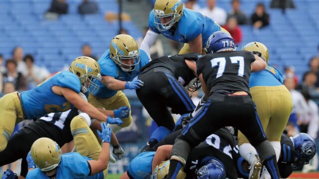 日体のkickで試合開始。R#31大路(4年・駒場東邦)のリターンにより自陣35ydsから1st down。RB#31大路のランにより前進するが、3rd down 4。ここは惜しくもパントに追い込まれる。P#12伊藤(拓)(4年・六甲学院)のパントで敵陣32ydから日体の1stシリーズ。スクリーンパスなどに対し、LB#42中原(4年・桐朋)のタックルなどで3rd down3に追い込むと、プレーアクションパスは失敗となり、パント。日体Pのナイスパントで自陣7ydsから東大2ndシリーズ。3rd downショートを迎えるも、RB#32樋山にボールを託し、1st downを獲得する!しかし、その後は続かず、パントとなる。P#12伊藤(拓)のナイスパントでハーフウェイラインを超えたところまで陣地を回復する。東大defenseは、ここも3&outでパントに追い込む。東大3rdシリーズは自陣9ydsから。RB#32樋山の内外おり混ぜたランで大きくゲインし、立て続けにフレッシュを獲得する!その後、3rd down4に追い込まれるも、QB#14伊藤(宏)(4年・立教池袋)からWR#7伊理(3年・東京都立国立)へのパスが見事にヒット。フレッシュを獲得する。その後もOLの素晴らしいブロッキングに助けられ、RB#32樋山がゲインを重ね、敵陣9yds付近から1st downを迎える。最後はスピードオプションでRB#32樋山が見事なTDラン!K#20張(2年・栄光学園)のkickも成功し、東大が先制する!(東大7-0日体)K#20張のkickで試合再開。LB#91塚田(智)(2年・開成)などのナイスカバーで日体大のリターンを敵陣28ydsで仕留める。その後日体が3rd down4を迎えたところで、1Q終了。(東大7-0日体)
