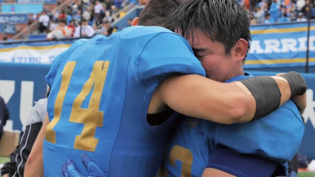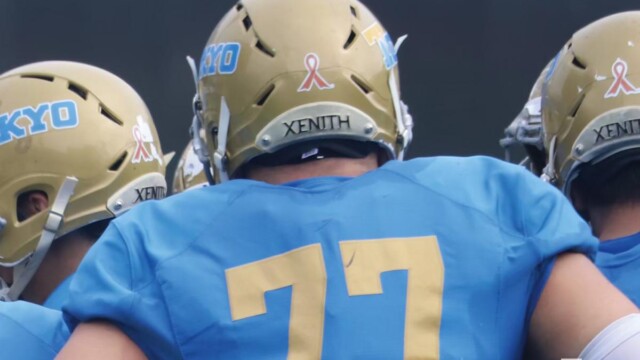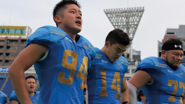 K#20張のキックで後半開始。日体の後半1stシリーズは敵陣30ydsから。ランプレーで今日初めてのフレッシュを獲得されると、パスで再びフレッシュを許す。その後もインサイドのランが止まらず、レッドゾーンに侵入されるも、DL#95本多(4年・駒場東邦)、LB#41中川(廉)(4年・麻布)のナイスタックルで3rd downに追い込む。ここで日体が早くも後半1回目のタイムアウト。タイムアウト明けとなったジェットのランをDB#19助川が見事にロスタックルし、FGに追い込む。キックは成功。日体も反撃の狼煙をあげる。(東大10-3日体)日体のkickで試合再開。R#13相藤(2年・神奈川県立湘南)のリターンで自陣23ydからの東大の攻撃。RB#32樋山のランでダウンを更新する。その後RB#21藤岡やWR/TE#96永幡へのスクリーンパスで前進するもパントで攻守交代。敵陣20ydからの日体の攻撃。ランプレーでの前進を許さず、3rd downに追い込むと、フレッシュを狙ったショートパスをDB#25八尋(4年・開成)が見事にカットしてパントに追い込む。自陣45yds付近からの東大の攻撃となり、3rd down3を迎えたところで3Q終了。(東大10-3日体)